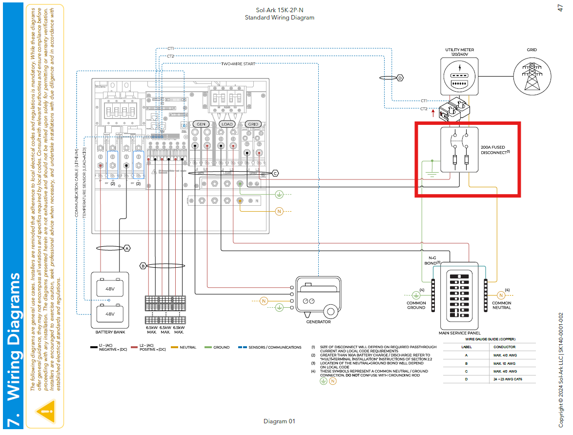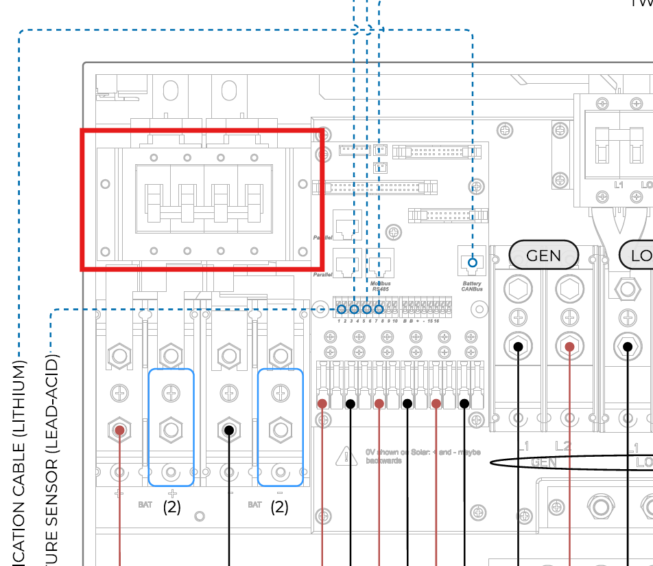 If unsure on system parameters during commissioning, a good first step is to restrict the Max A Charge and Discharge amperage to 50A and then proceed with setup, readjusting max amperage after confirming battery communication.