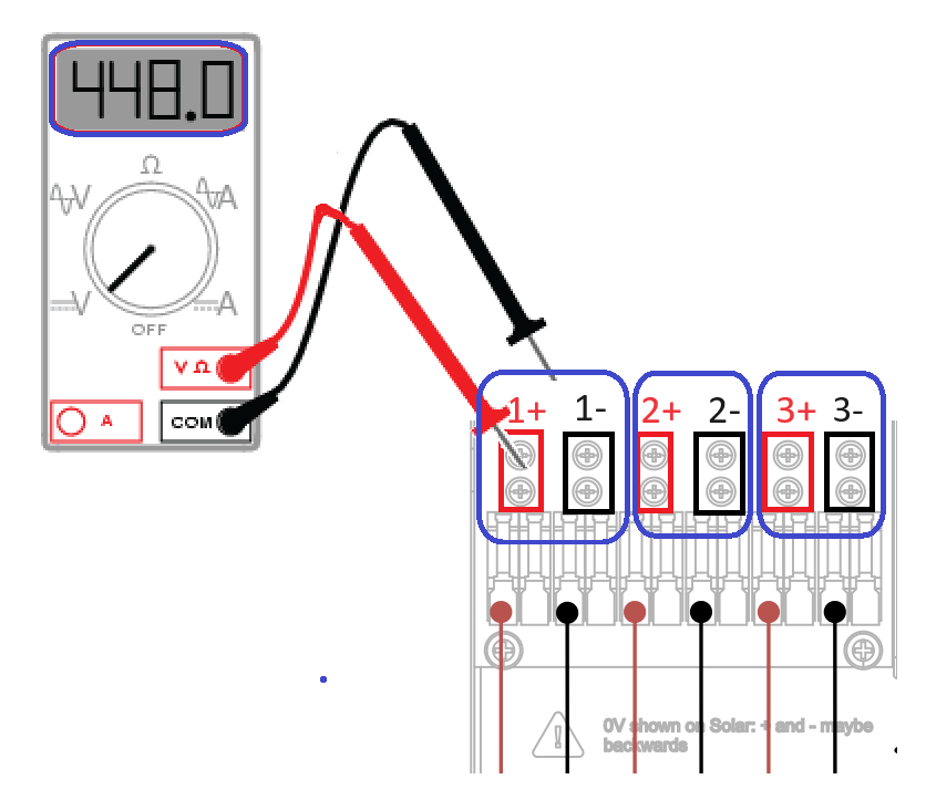 Turn on one battery module and confirm correct polarity on the Sol-Ark DC battery terminals, using a multi-meter.