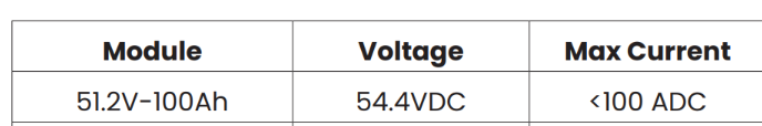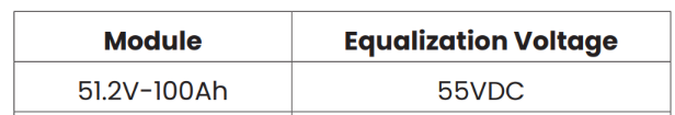 Battery may arrive at a low state of charge. It is a good practice to individually charge all batteries to a full charge using a 48V charger that is capable of CC/CV (Constant Current / Constant Voltage)